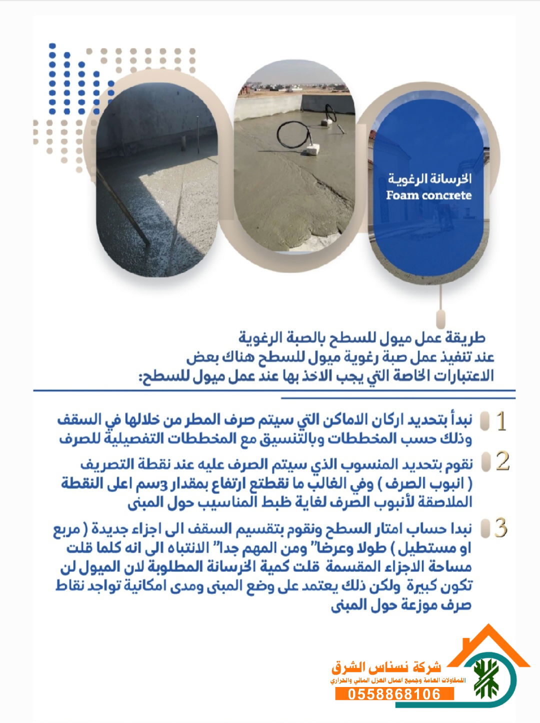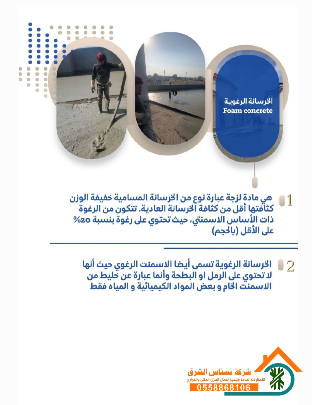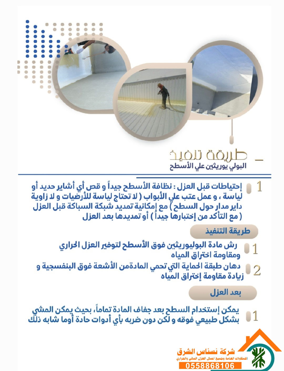 شركة نسناس الشرق للمقاولات العامة وجميع اعمال العزل المائي والحراري تعتبر من الشركات الرائدة في توفير خدمات متعددة ومتنوعة في مجال العزل المائي والحراري. نحن نقدم حلولاً متخصصة في تحديث وصيانة المباني بما يضمن الحفاظ على جودتها وتقليل التأثيرات البيئية السلبية. يتميز العزل المائي والحراري بكفاءته في الحفاظ على بيئة داخلية مريحة، تقليل استهلاك الطاقة، ومقاومة العوامل الخارجية المؤثرة.
